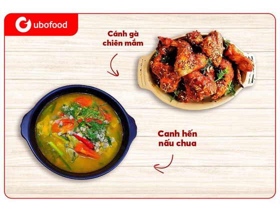 Combo món ngon cực hợp vào những ngày hè: canh hến nấu chua ngọt tự nhiên từ hến sạch tươi, lại dậy lên mùi hương đặc trưng lô cuốn từ rau răm, canh gà chiên mắm giòn tan được áo bởi lớp ngoài giòn, vàng óng ả, bên trong thịt cánh mềm mại, ngon khó cưỡng.